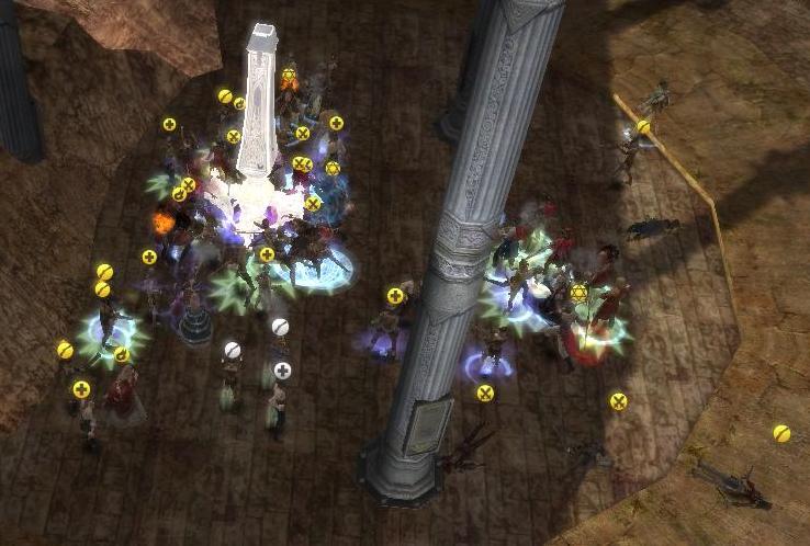 По счастливой случайности удар одного из наших мемберов ГИ был последним. И мы стали счастливыми обладателями колонны(аж на полчаса, ровно столько сколько понадобилось союзу ЭСПАДЫ вынести ее). Тут у нас попыточка защищитить колонну(тут где то на скрине есть моб 100-го лвла, которого хватило всей нашей ГИ). |